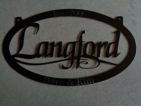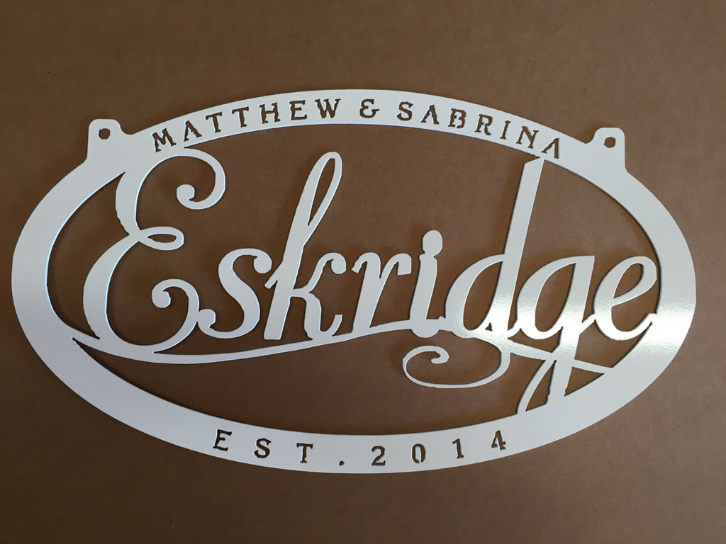 Metal laser cut sign personalized with your name with gorgeous detail, finished in white powder coat finish or gorgeous, rustic, acid wash ,measures 30"x17".